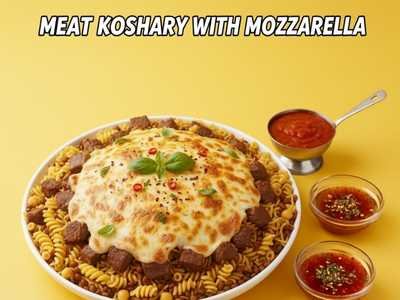 طبق كشري تقليدي مغطى بجبنة الموزاريلا المذابة.