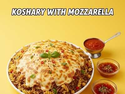 طبق كشري تقليدي مغطى بجبنة الموزاريلا المذابة.